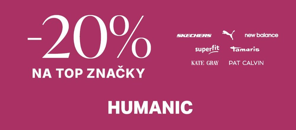 Právě teď v HUMANICu: sleva 20 % na top značky! Neváhejte a nakupte oblíbené modely za top ceny.