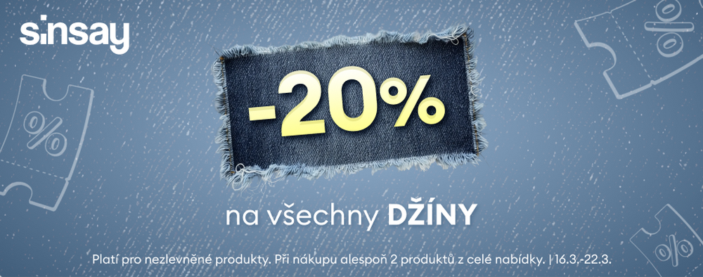 Od 16. do 22. března objevte stylové džíny se slevou 20 %! Oživte svůj šatník trendy kousky a doplňky a užijte si pohodlí i styl v jednom.