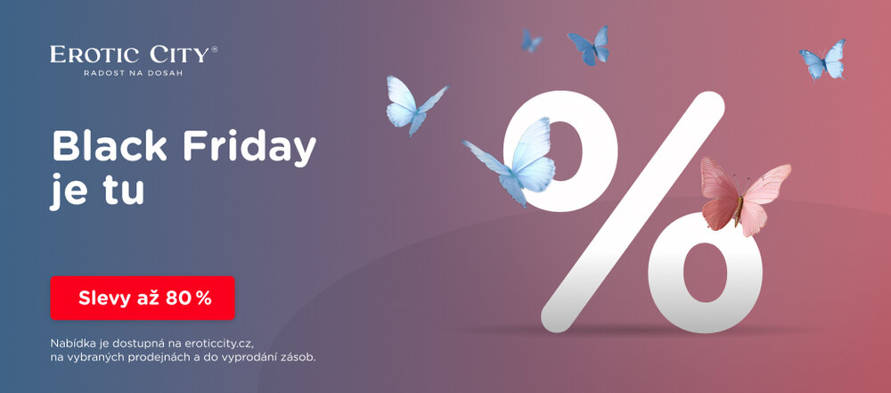 Black Friday v Erotic City – slevy až 80 %! Do 2. 12. 2025 probíhá největší akce roku s výjimečnými slevami na široký sortiment produktů. Navštivte prodejnu Erotic City a využijte jedinečnou příležitost pořídit si skvělé produkty za bezkonkurenční ceny. Nenechte si ujít tuto limitovanou nabídku!