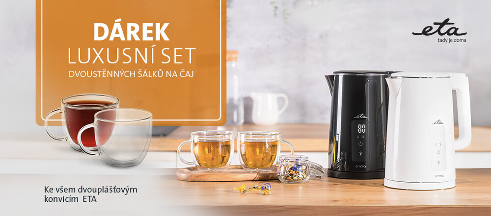 Milovníci čajů, máme pro vás skvělou příležitost! Pořiďte si dvouplášťovou rychlovarnou konvici, zde zaregistrujte svůj nákup a získejte luxusní set dvoustěnných šálků. Uvidíte, že vám bude chutnat zase o trochu víc.