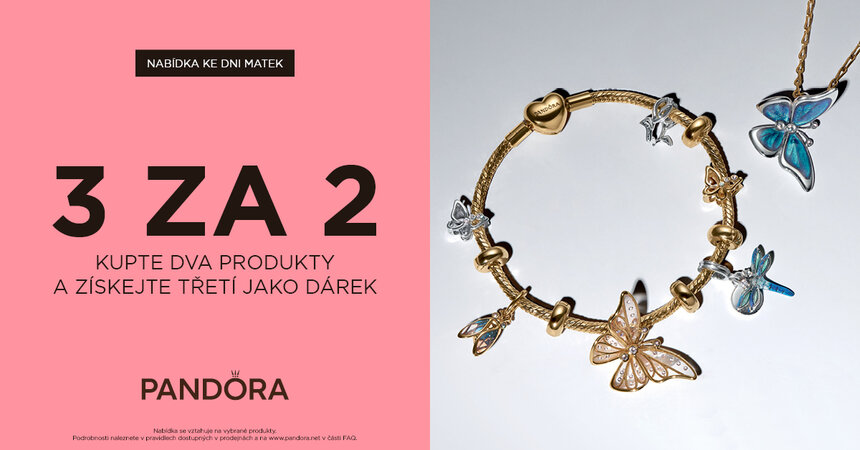 Akce se vztahuje na vybrané produkty. Podmínky akce jsou dostupné na prodejnách, anebo na www.pandora.net