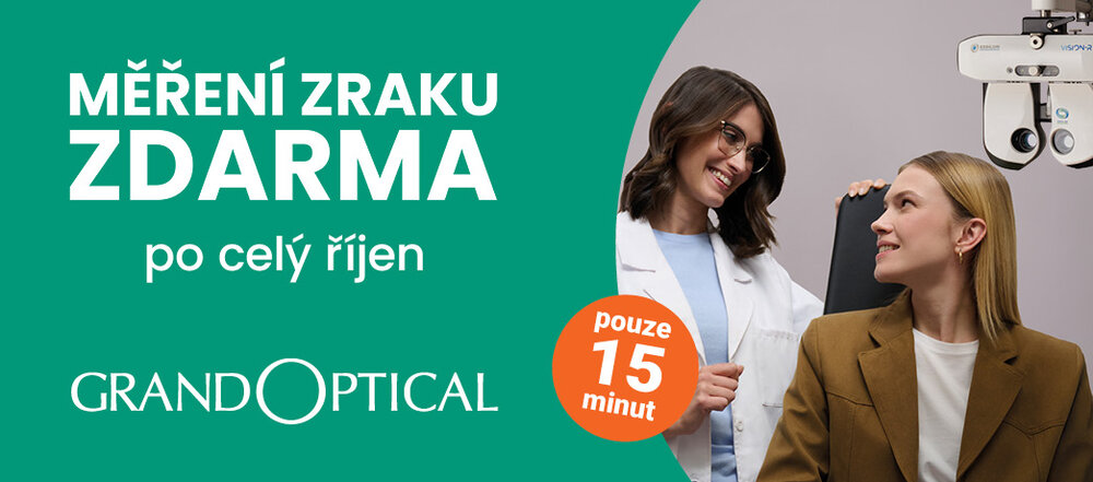 Přijďte do prodejny GrandOptical a nechte si změřit zrak zcela zdarma a bez podmínky nákupu po celý říjen. Objednejte se na měření zraku zdarma na www.grandoptical.cz.