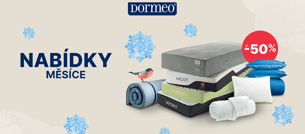 NABÍDKY MĚSÍCE! Zažijte pohodlí každou noc. Dopřejte si kvalitní odpočinek s našimi Dormeo produkty. Platnost nabídky od 05.02. – 06.03.2026
