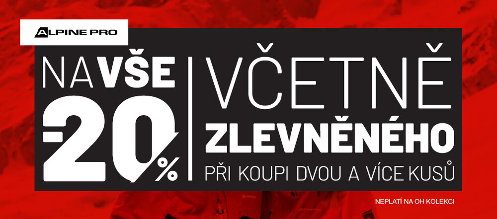 ALPINE PRO má pro vás dodatečnou slevu 20 % na všechno, včetně zlevněných produktů při koupi 2 a více ks.
