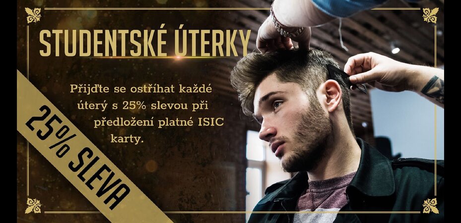 Jsi student? Jestli máš platnou ISIC kartu, ostříháme tě s perfektní slevou 25 %.