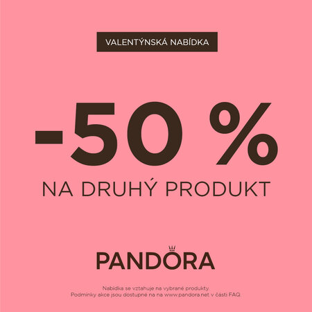 Při nákupu 2 kusů druhý, levnější s 50 % slevou. Platí pro vybrané produkty. Podmínky akce jsou dostupné na prodejnách anebo online na pandora.net.