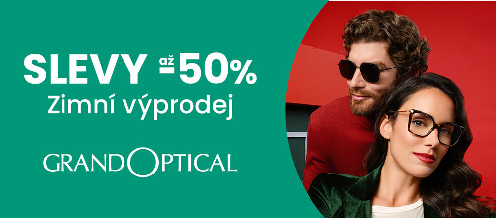 Přijďte do prodejny GrandOptical a pořiďte si v Zimním výprodeji nové dioptrické nebo sluneční brýle se slevou až 50 %. Akci nelze kombinovat ani sčítat s jinými akčními nabídkami nebo poukazy. Nabídka platí do odvolání. Více informací v prodejně nebo na www.grandoptical.cz.